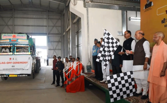 नई दिल्ली। यूपी की राजधानी लखनऊ की ब्रह्मोस एयरोस्पेस यूनिट में बनी ब्रह्मोस मिसाइलों के पहले बैच को आज केंद्रीय रक्षा मंत्री राजनाथ सिंह और मुख्यमंत्री योगी आदित्यनाथ ने ह