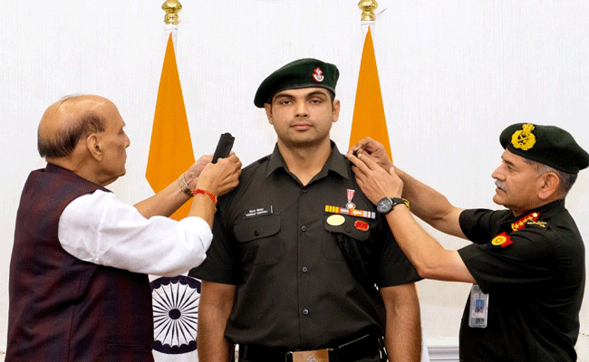नई दिल्ली। ओलंपिक स्वर्ण पदक विजेता भाला फेंक खिलाड़ी नीरज चोपड़ा को बुधवार को लेफ्टिनेंट कर्नल के पद से सम्मानित किया गया। रक्षा मंत्री राजनाथ सिंह ने उन्हें दृढ़ता और राष